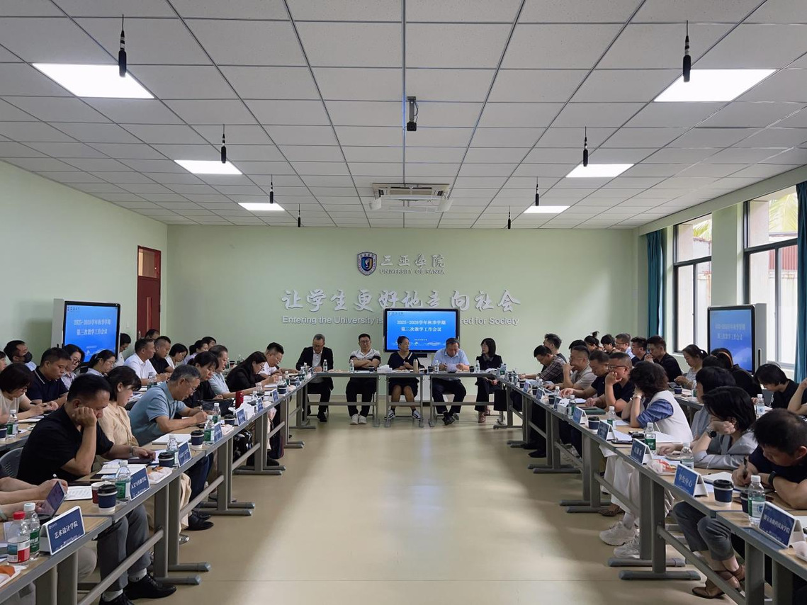 2025 年 10 月 27 日上午,三亞學(xué)院2025—2026 學(xué)年秋季學(xué)期第三次教學(xué)工作會(huì)議在書明樓 C101 教室召開,專題研究本科人才培養(yǎng)方案修訂工作。校領(lǐng)導(dǎo)王丹、朱沁夫、高一蘭、柴勇、陳博,各學(xué)院負(fù)責(zé)人及教務(wù)處、學(xué)工處、高教研究與質(zhì)量評(píng)估中心、應(yīng)用科技處等職能部門負(fù)責(zé)人參加會(huì)議。