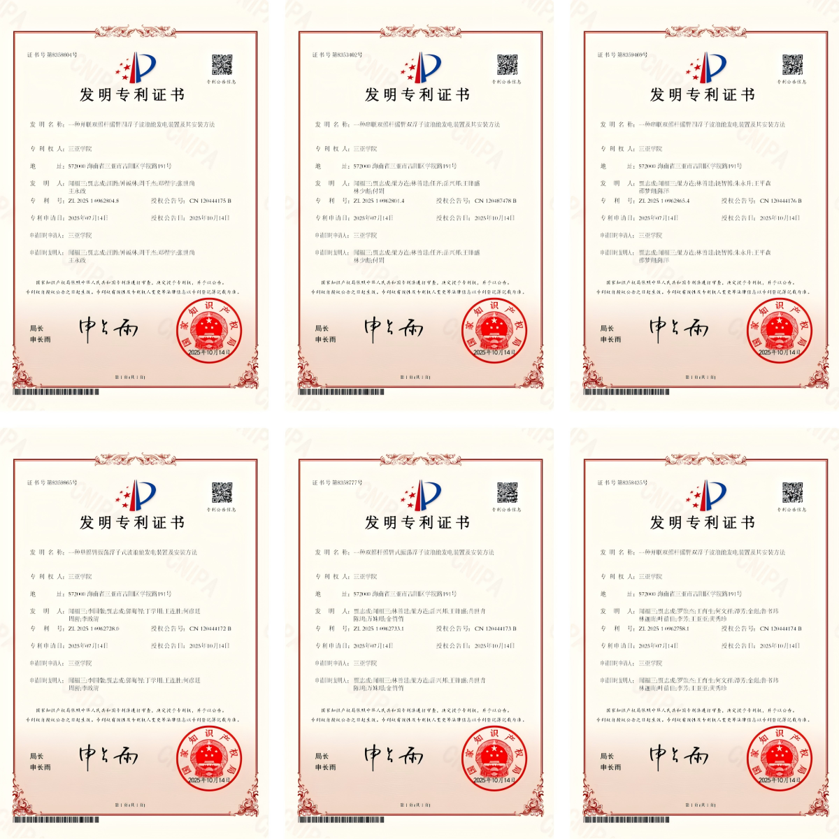 10月14日,三亞學(xué)院在國家知識產(chǎn)權(quán)局專利公布公告中一次性獲6項波浪能發(fā)電相關(guān)發(fā)明專利授權(quán),顯示了我校在海洋新能源領(lǐng)域的技術(shù)積累與創(chuàng)新能力。作為海南省應(yīng)用型本科院校的代表,三亞學(xué)院始終秉持產(chǎn)教融合的發(fā)展道路,通過著力加強(qiáng)團(tuán)隊建設(shè)與人才培養(yǎng),在新能源技術(shù)研發(fā)領(lǐng)域取得重要進(jìn)展。