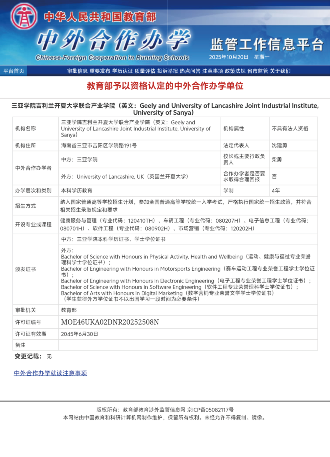 三亞學(xué)院吉利蘭開夏大學(xué)聯(lián)合產(chǎn)業(yè)學(xué)院