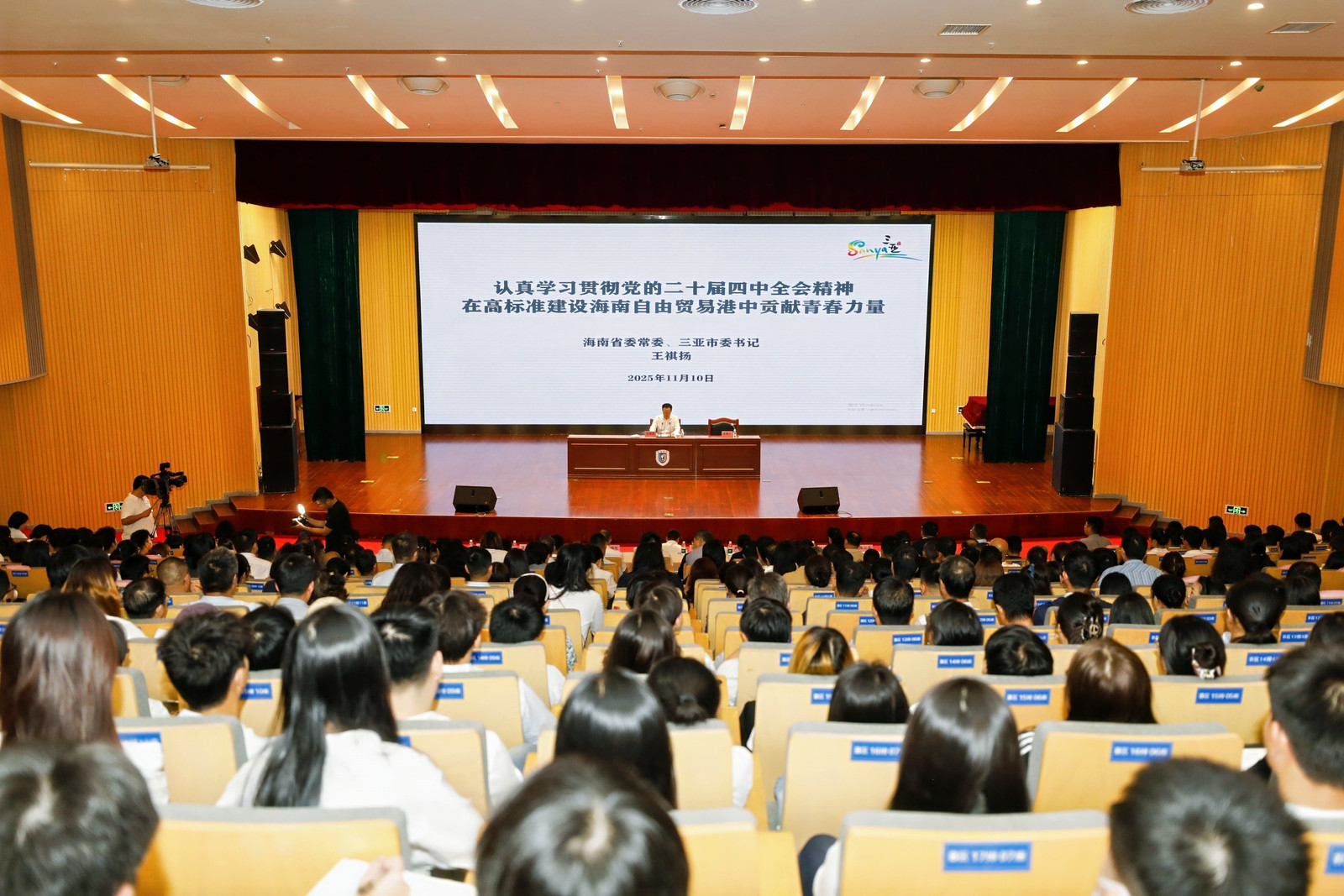 11月10日,省委常委、市委書記王祺揚(yáng)以“認(rèn)真學(xué)習(xí)貫徹黨的二十屆四中全會精神,在高標(biāo)準(zhǔn)建設(shè)海南自由貿(mào)易港中貢獻(xiàn)青春力量”為題,在三亞學(xué)院宣講黨的二十屆四中全會精神并講授思政課。三亞學(xué)院校長沈建勇主持宣講會。