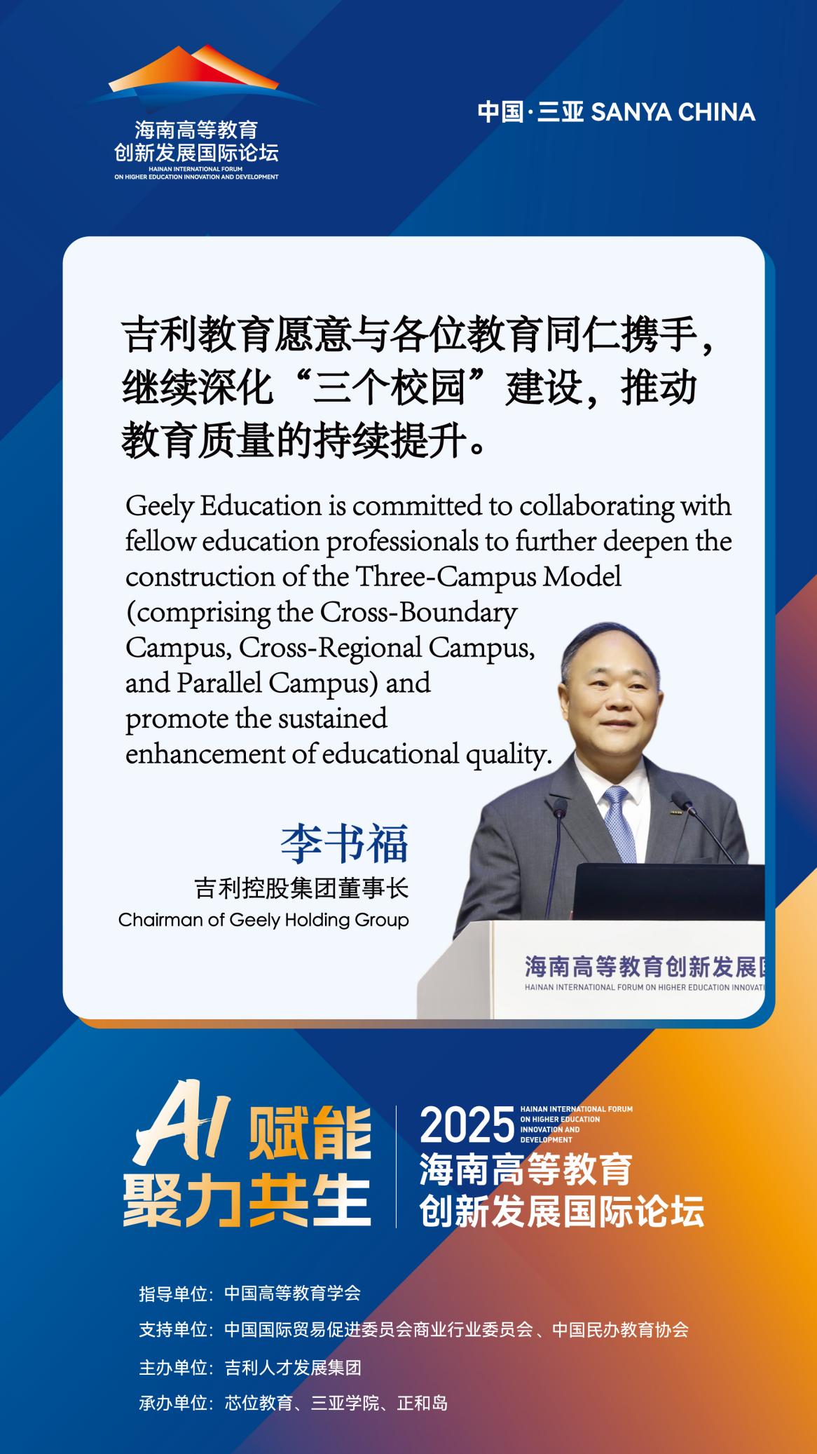 ·吉利人才發(fā)展集團CEO、全球芯位科技集團董事長、三亞學院理事長·