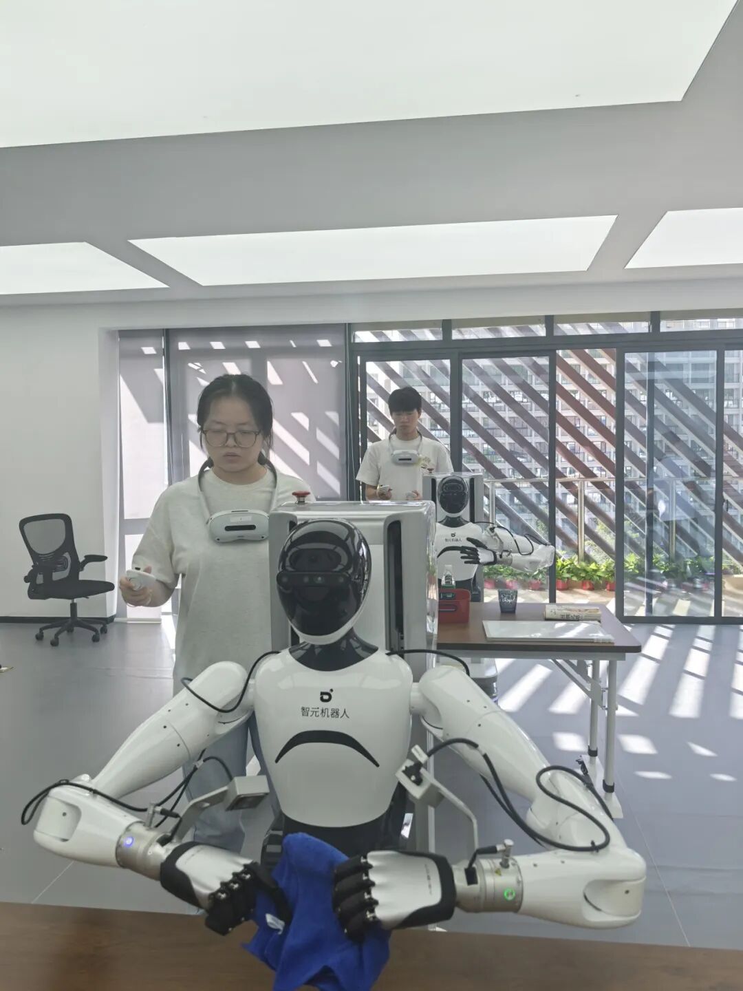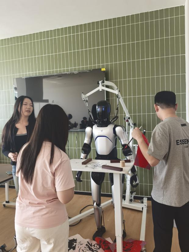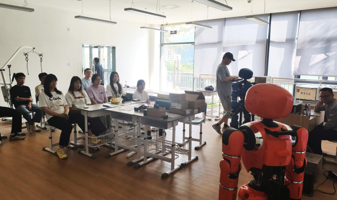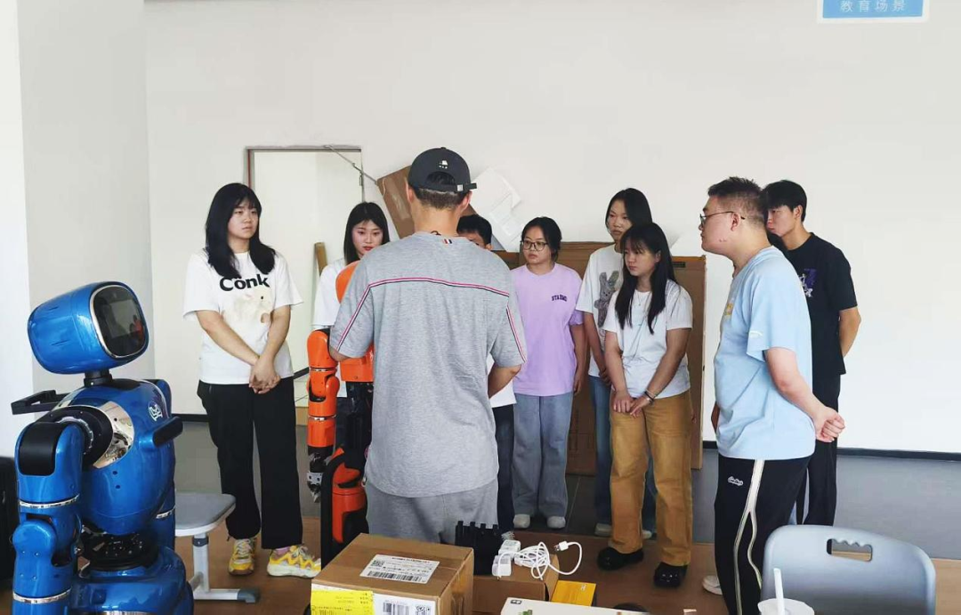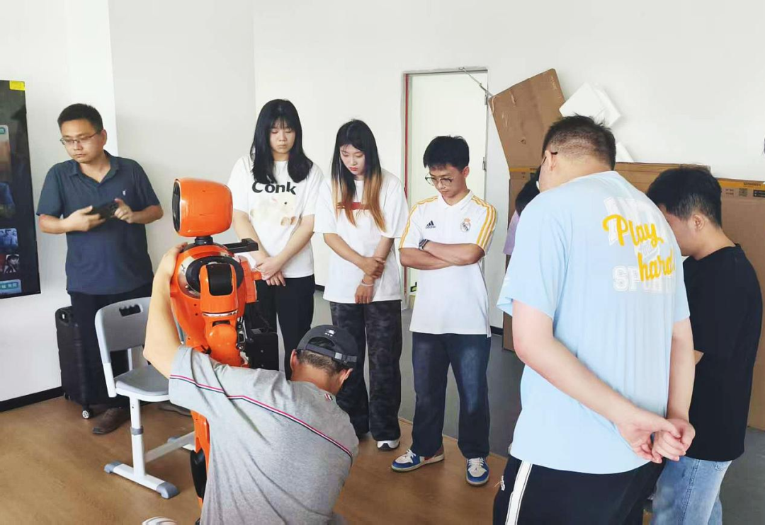 在長智公司的技術(shù)車間里,學(xué)生們面對的不再是教材上的習(xí)題,而是企業(yè)正在攻關(guān)的實(shí)際項(xiàng)目。他們分組協(xié)作,在工程師的帶領(lǐng)下,學(xué)習(xí)并操作具身智能機(jī)器人,嘗試將其應(yīng)用于文旅引導(dǎo)、康養(yǎng)輔助等具體場景的解決方案設(shè)計(jì)中。