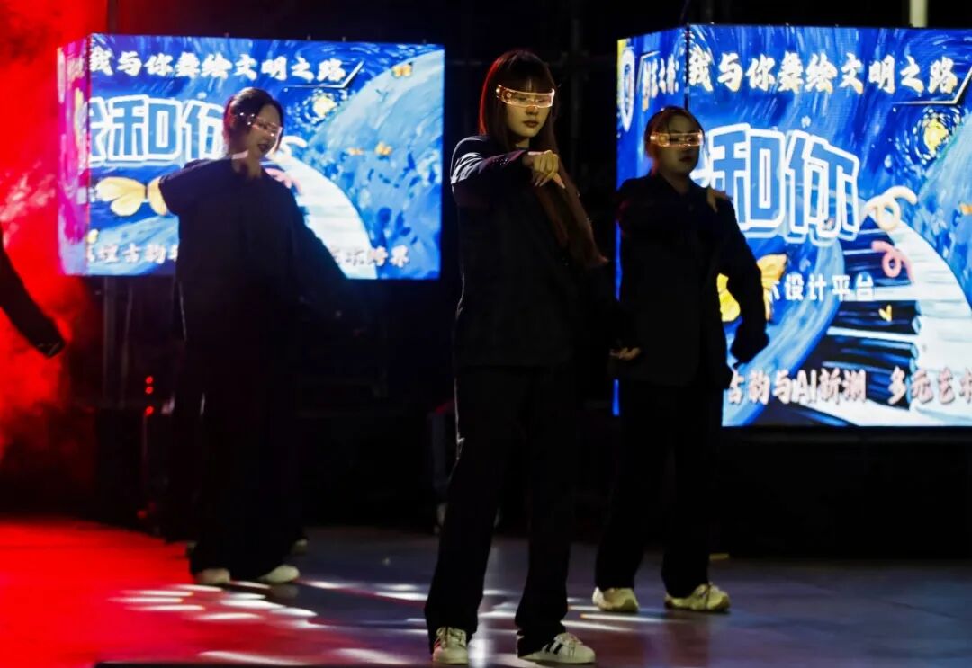 由信息與智能工程學院編排,在《編碼與齒輪共舞 數(shù)字后未來之翼》中,學子們用身體語言演繹代碼邏輯與機械美學,展現(xiàn)數(shù)字時代的節(jié)奏與韻律,充滿科技感的舞蹈令人耳目一新。