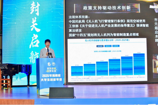 在隨后的評審中,三亞學(xué)院學(xué)子憑借扎實(shí)的研究與出色的表達(dá)贏得廣泛認(rèn)可。汽車學(xué)院項(xiàng)目《改進(jìn)動態(tài)多種群粒子群算法無人機(jī)路徑規(guī)劃研究》榮獲“大學(xué)生創(chuàng)新學(xué)術(shù)論文報(bào)告一等獎”,并在閉幕式作公開報(bào)告;四個項(xiàng)目獲“最佳創(chuàng)意獎”,三個項(xiàng)目獲“我最喜愛項(xiàng)目獎”,其中“逐浪藍(lán)色能源”項(xiàng)目更實(shí)現(xiàn)“雙獎”收獲,彰顯了創(chuàng)新性與影響力的雙重認(rèn)可。