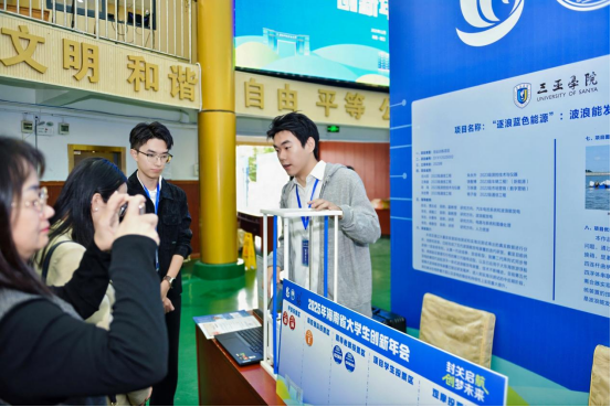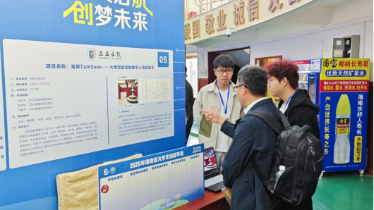 在成果展示環(huán)節(jié),學(xué)院通過實(shí)物、展板與路演等多種形式,生動呈現(xiàn)了一批緊扣產(chǎn)業(yè)需求、具備應(yīng)用潛力的優(yōu)秀項(xiàng)目。這些成果覆蓋人工智能、海洋能源、智慧農(nóng)業(yè)、綠色金融等多個前沿領(lǐng)域:信智學(xué)院《言犀TalkSeek——大模型驅(qū)動的數(shù)字人語音助手》聚焦人機(jī)交互前沿;汽車學(xué)院《“逐浪藍(lán)色能源”:波浪能發(fā)電裝置的創(chuàng)新研發(fā)》積極響應(yīng)海南海洋強(qiáng)省戰(zhàn)略;智慧農(nóng)業(yè)方向的《海洋漁業(yè)養(yǎng)殖無人機(jī)監(jiān)測系統(tǒng)》與面向國家“雙碳”目標(biāo)的《企業(yè)雙碳管理實(shí)訓(xùn)平臺》等項(xiàng)目,均體現(xiàn)出鮮明的現(xiàn)實(shí)導(dǎo)向和跨學(xué)科融合特色。