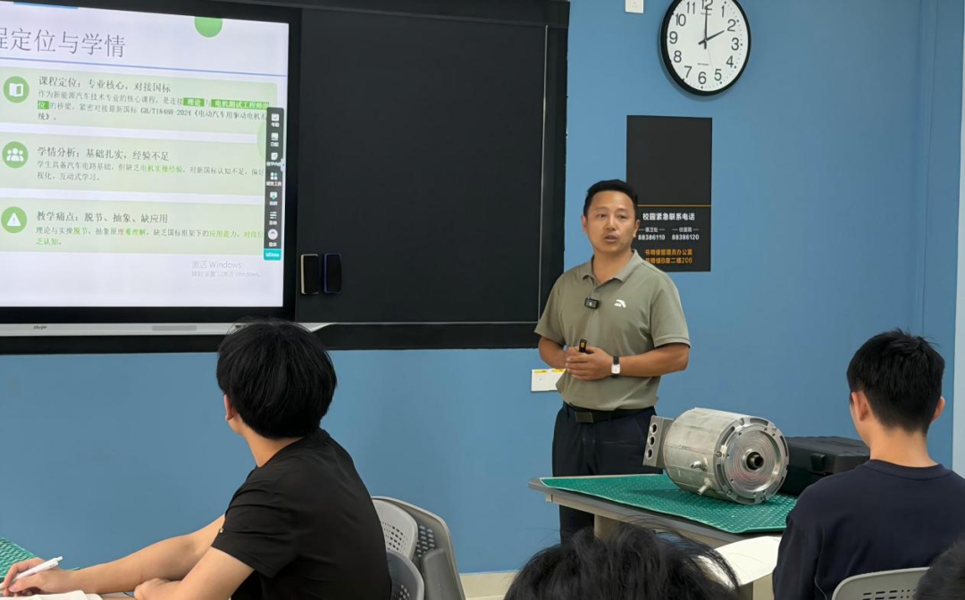 王良成老師(《新能源汽車驅(qū)動電機技術(shù)》),構(gòu)建“教材-視頻-仿真-題庫-案例”五位一體教學資源體系??琢钣罾蠋煟ā度斯ぶ悄芗夹g(shù)及應(yīng)用》),緊密對接行業(yè)發(fā)展需求,深度融入“崗課賽證”產(chǎn)教融合理念,在夯實專業(yè)基礎(chǔ)的同時,強化技能實操與崗位適配性,全方位展現(xiàn)了專業(yè)課程教學的創(chuàng)新思路與實踐成效。