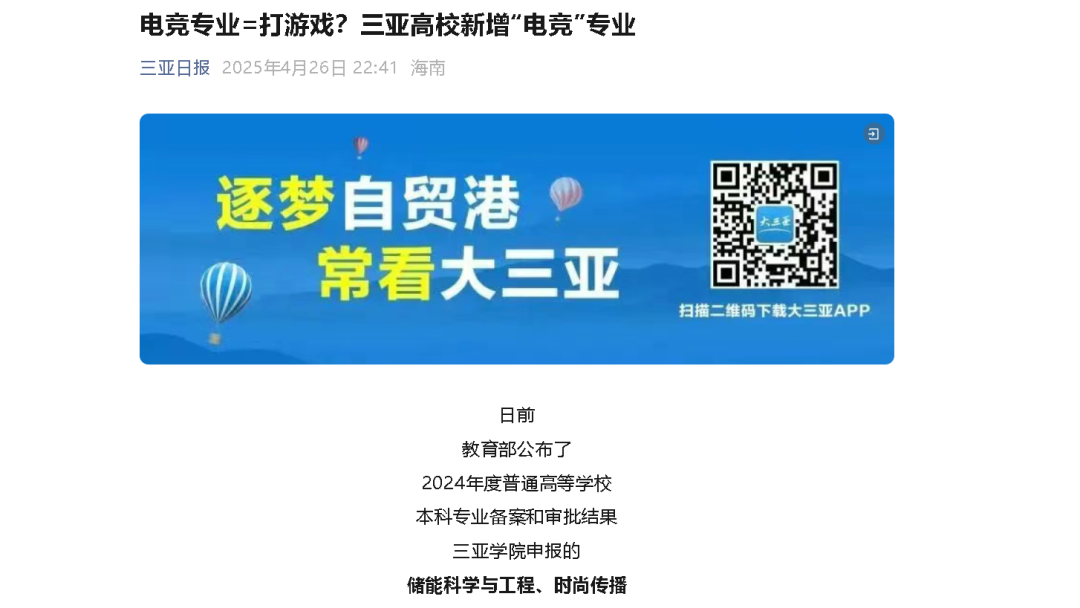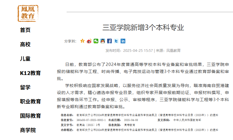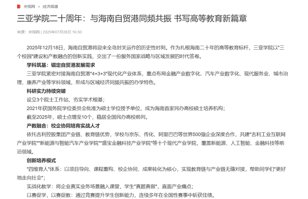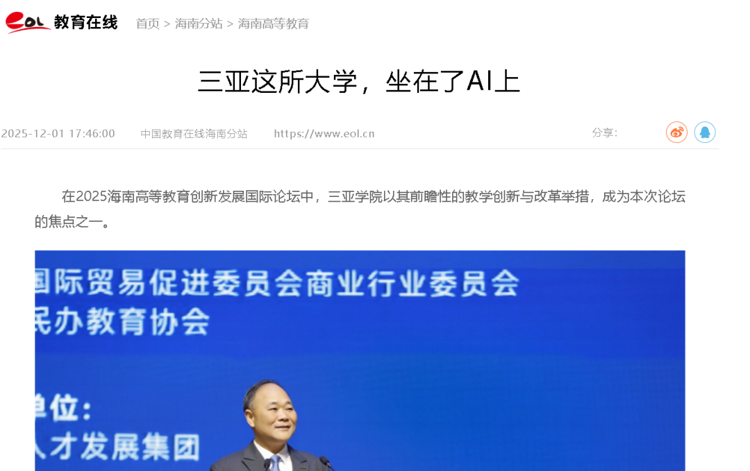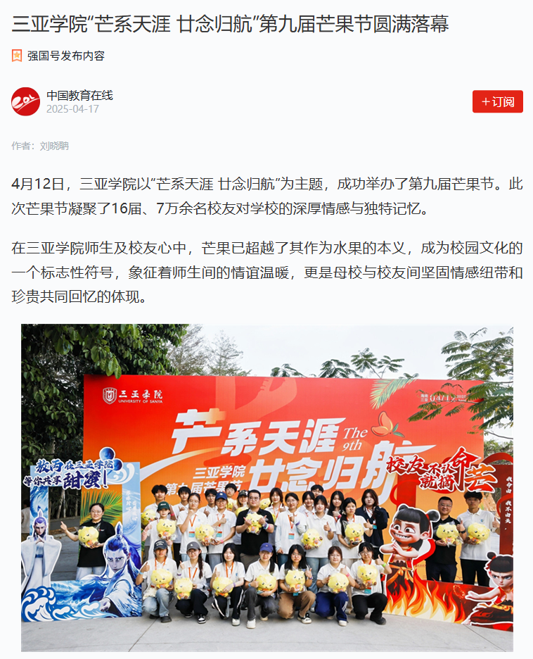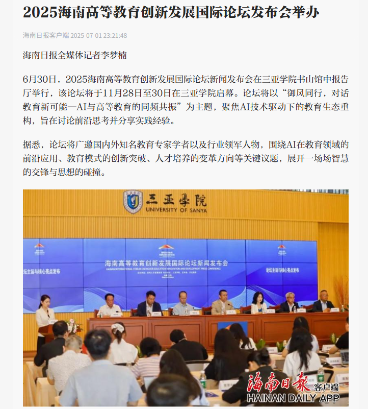 三亞學(xué)院的“2025版”動態(tài)被媒體持續(xù)關(guān)注