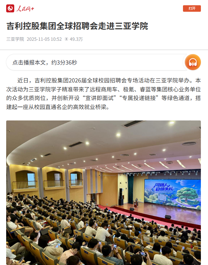 吉利控股集團(tuán)全球招聘會走進(jìn)三亞學(xué)院