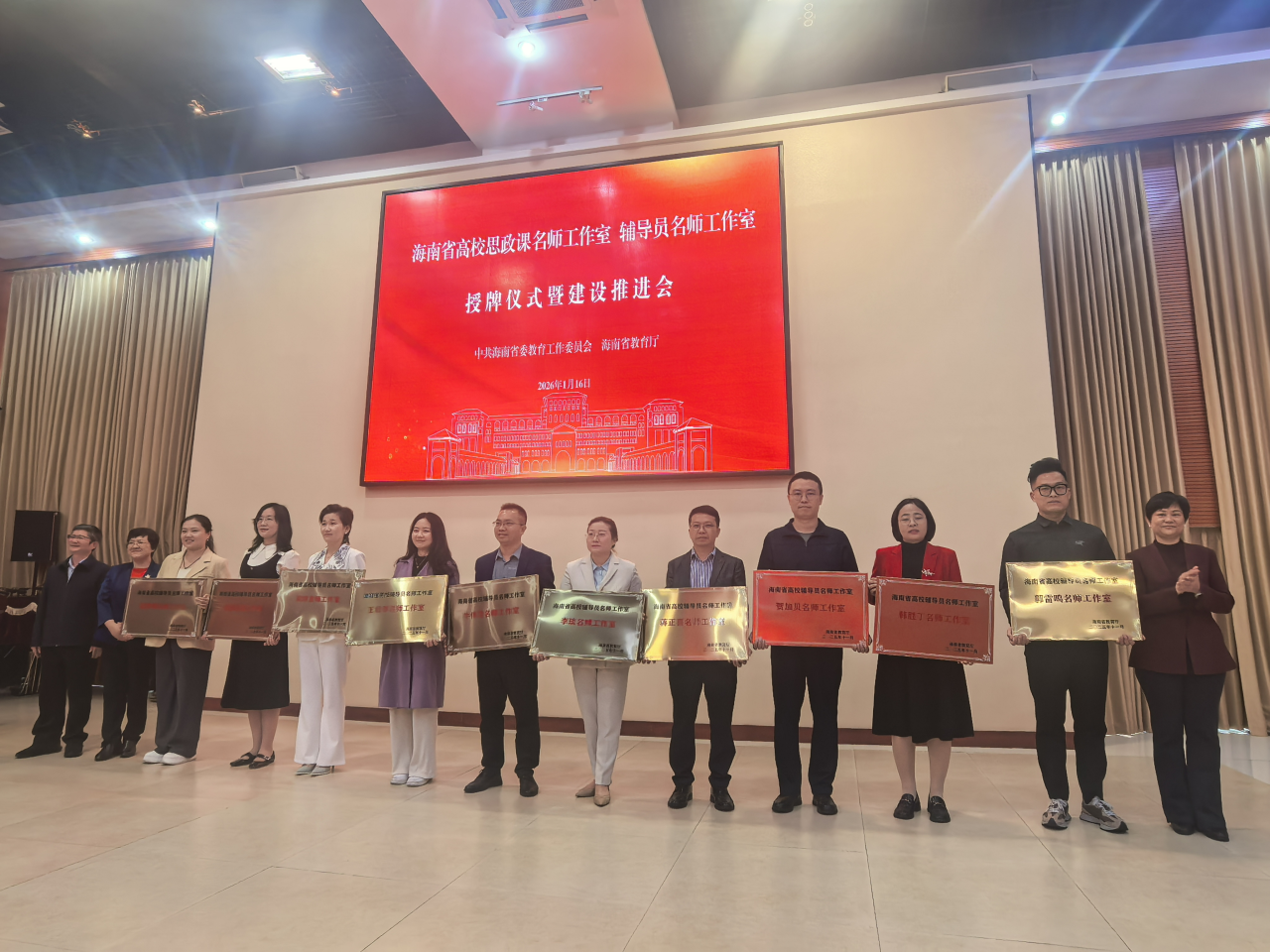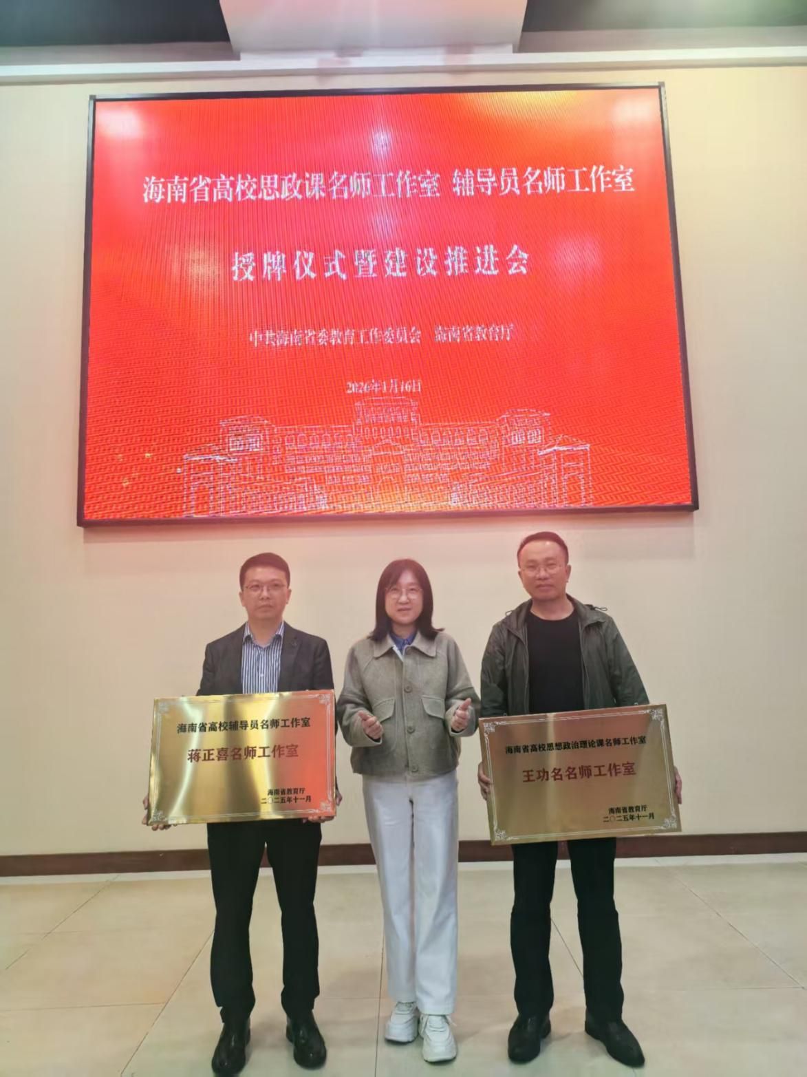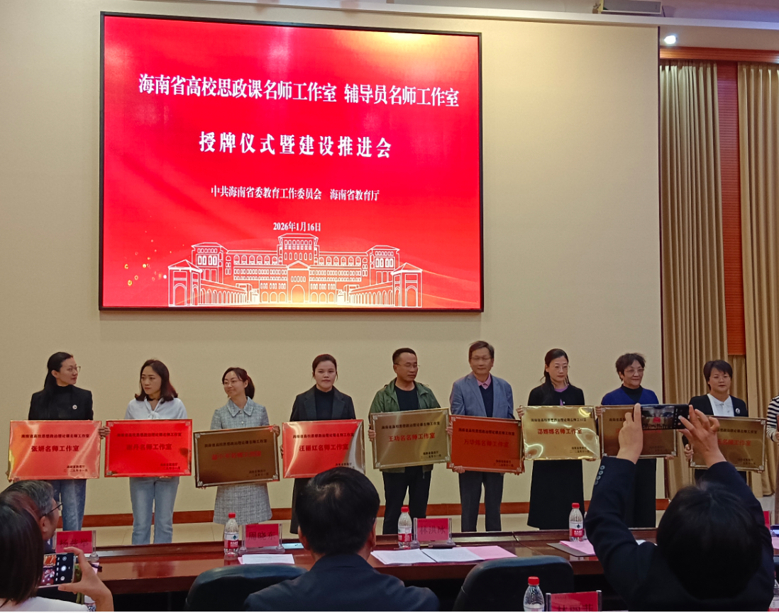 近期,海南省高校思政課名師工作室、輔導(dǎo)員名師工作室授牌儀式暨建設(shè)推進會在??谂e行。三亞學(xué)院馬克思主義學(xué)院院長王功名主持的“三亞學(xué)院思政訪談室”入選海南省高校思想政治理論課名師工作室;社會學(xué)院團委副書記蔣正喜主持的“AI-LOVE 心智引擎工作室”入選海南省高校輔導(dǎo)員名師工作室,兩個名師工作室獲省教育廳正式授牌。三亞學(xué)院副校長高一蘭代表學(xué)校出席儀式。