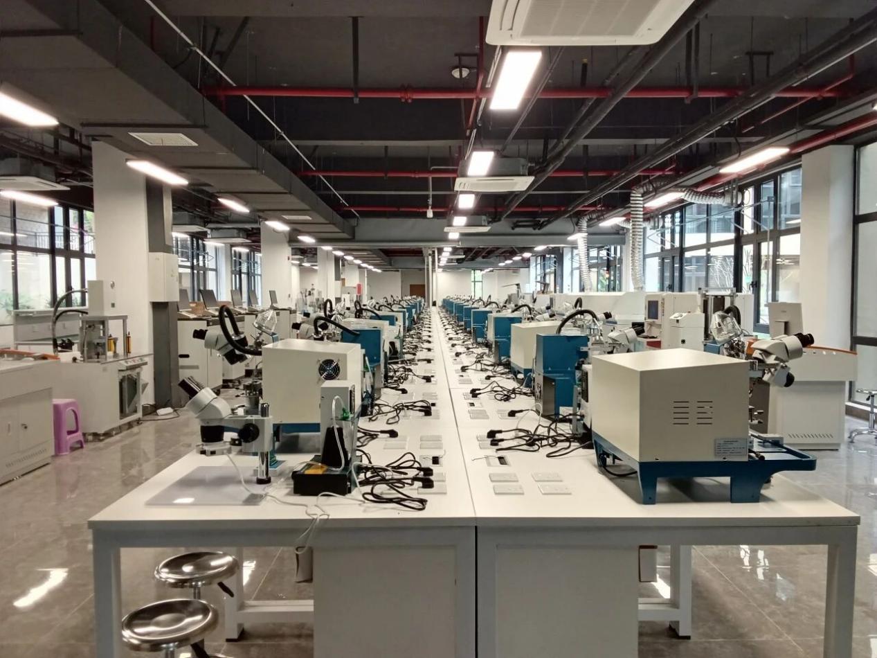 在“軟件定義汽車”的時代,電池管理系統(tǒng)、自動駕駛控制器、智能座艙……這些“高大上”的部件,性能穩(wěn)不穩(wěn),關鍵看制造和封裝的工藝精度。為了讓學生真正“懂行”,三亞學院直接“搬”了一條工業(yè)級生產線進校園:SMT實驗室里,全自動錫膏印刷機、高速貼片機、回流焊爐、AOI檢測設備一字排開,完整復刻車規(guī)級電子產品的生產流程;封裝實驗室里,晶圓劃片、固晶、鍵合、塑封、測試,芯片誕生的每一步都能親手操作。