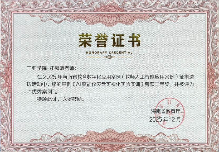 日前,海南省教育廳2025年教育數(shù)字化應用案例征集遴選結果公布,信息與智能工程學院汪舜敏老師的《AI賦能儀表盤可視化實驗實訓》案例獲教師人工智能應用類省級二等獎,獲評優(yōu)秀案例。