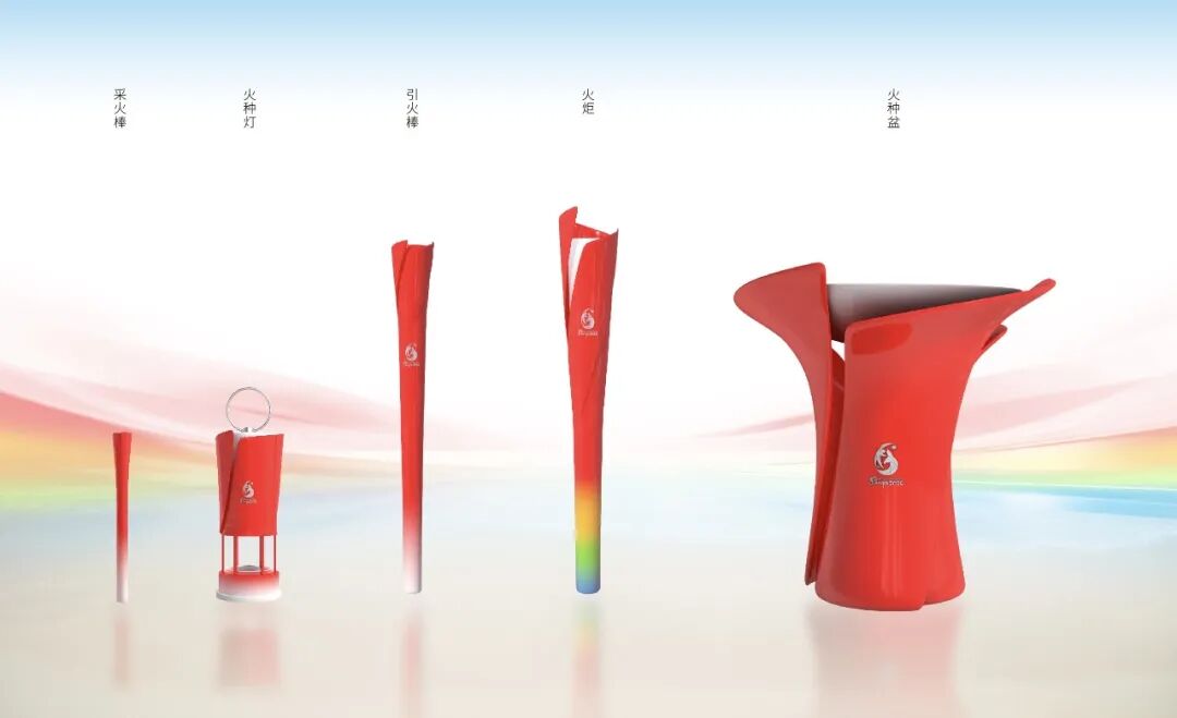 手柄處融入椰子樹仿生紋理與晚霞漸變色,既增加握持摩擦力確保沙灘、海上傳遞的穩(wěn)定性,又讓火炬手感受到海風(fēng)、晚霞與椰影的三亞浪漫。配套的引火棒與火種燈設(shè)計為含苞待放的花蕾形態(tài),火種盆呈螺旋上升的花瓣結(jié)構(gòu),三者共同構(gòu)成“孕育—傳遞—盛放”的完整故事鏈,使“山海繁花”的城市意象與“靈動競技”的賽事精神一脈相承。