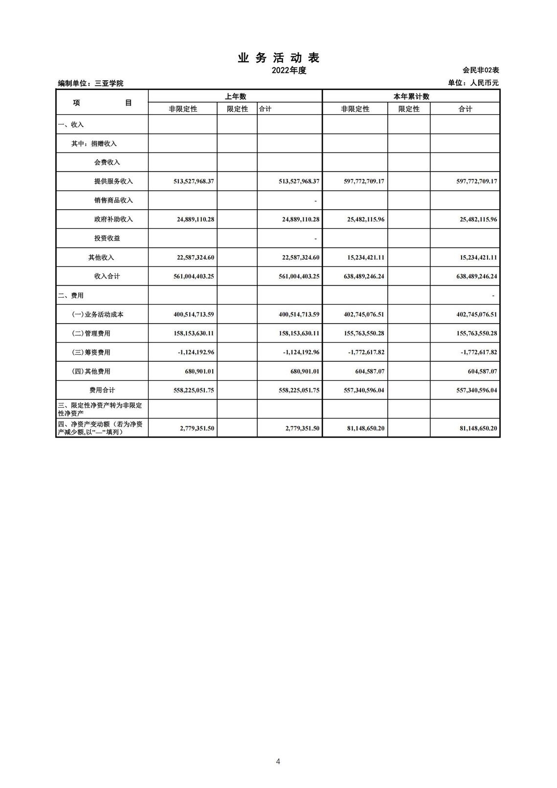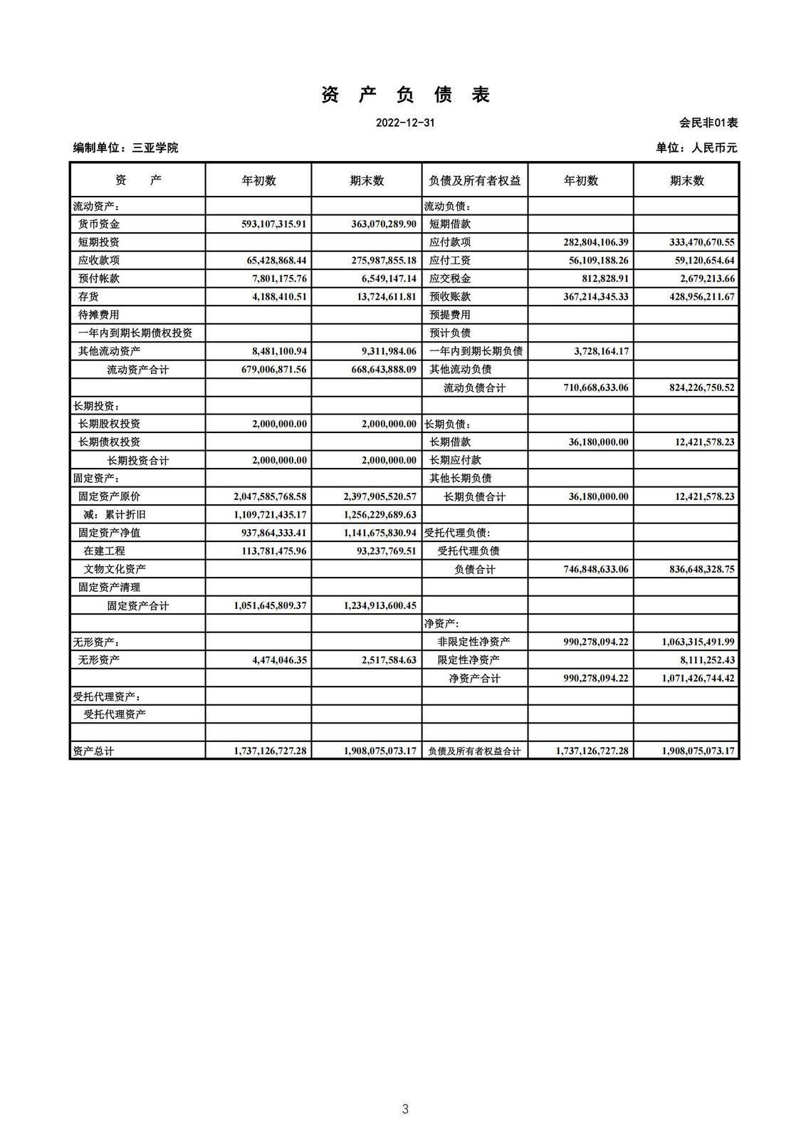 三亞學院2022年財務預算、決算